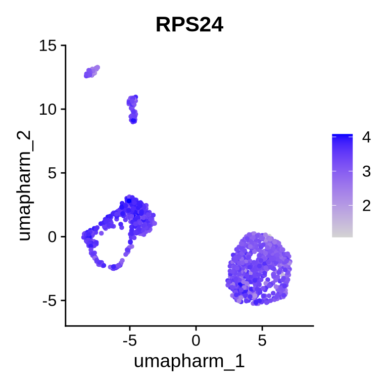 FeaturePlot(obj, features = "RPS24", reduction = "umap.harm")